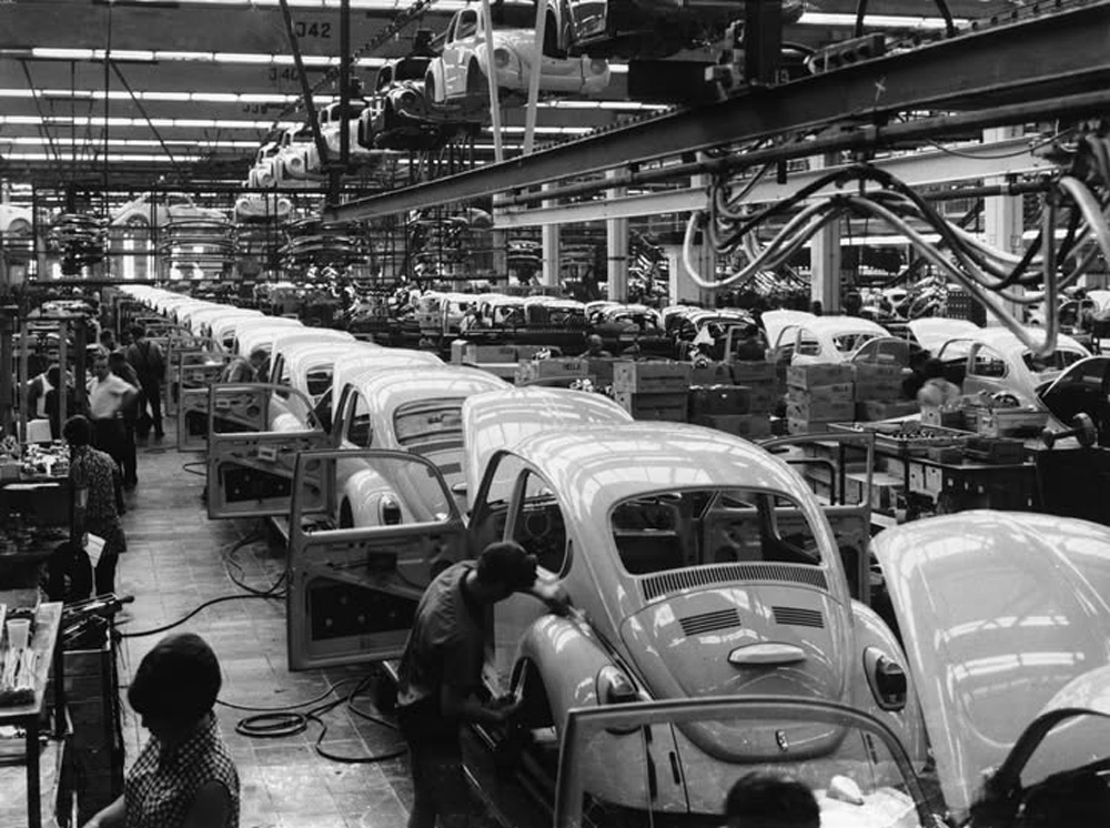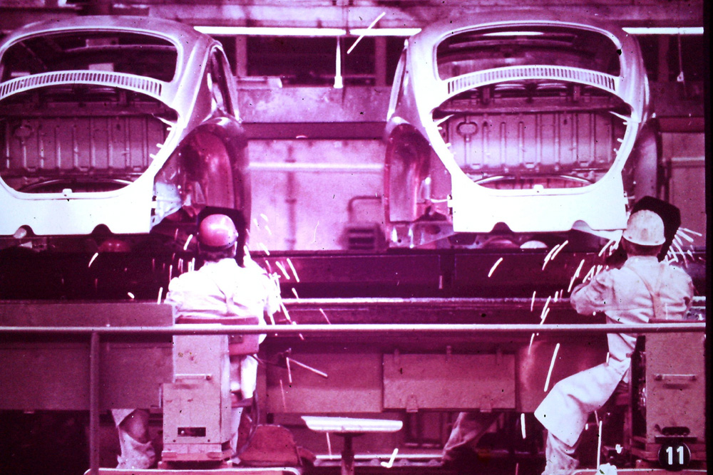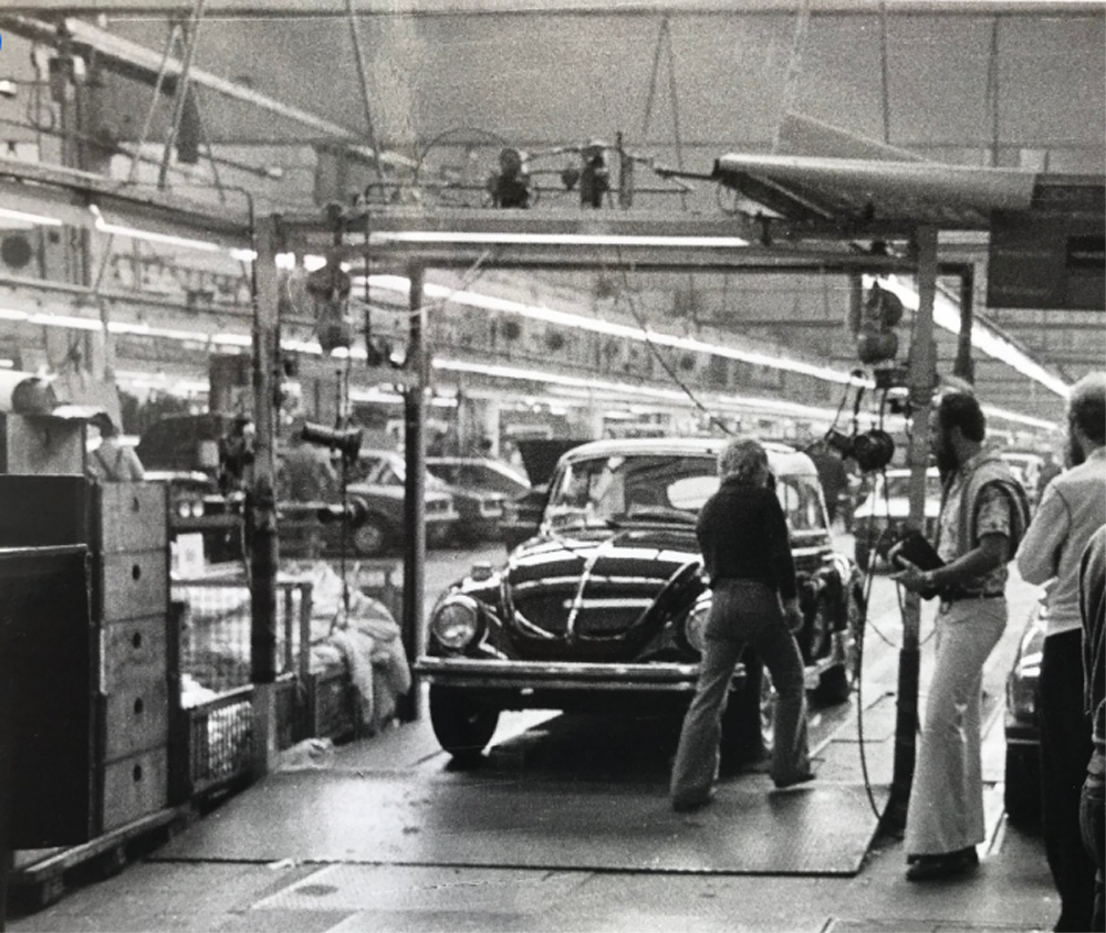 Beetle body and chassis coming together on the Wolfsburg assemby line